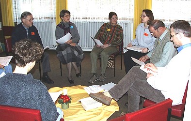 Bibeltag der Seelsorgeeinheit Edith Stein in Eberbach Gesprächsrunde beim letztjährigen Bibeltag "Feuer und Flamme". (Foto:privat)(hr) (bnc) Auf Hochtouren laufen derzeit die Vorbereitungen für den diesjährigen gemeinsamen Bibeltag der katholischen Pfarrgemeinden St. Josef und St.Johannes Nepomuk (Eberbach), St.Afra (Neckargerach) und St.Maria (Waldbrunn), die sich im Oktober 2001 zur Seelsorgeeinheit "Neckartal – Hoher Odenwald, Edith Stein" zusammengeschlossen haben.