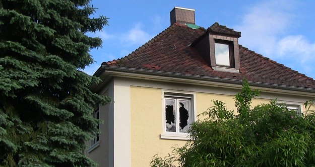 Feuer in einem Zimmer in der Beckstraße (Foto: Hubert Richter)(hr) (pol) Heute Nachmittag verursachte der Brand eines Zimmers im Obergeschoss eines Einfamilienhauses in der Beckstraße in Eberbach erheblichen Sachschaden.