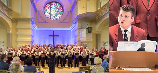 Liedertafel und des Liederkranz Eberbach gemeinsam vor. Rechts: Der junge Pianist und Sänger Simon Warbeck aus Geesthacht begeisterte mit "Bis ans Ende meiner Lieder" von Udo Jürgens. (Fotos: Manuela Held).