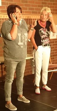 Von den Beschwernissen der Frau über 50 (Foto: Thomas Wilken)(tom) Petra Binder und Doris Reichenauer haben das, was die Schwaben eine „Schwertgosch“ nennen. Als Duo „Dui do on de Sell“ frotzeln ihre Figuren „Mariele“ und „Karlene“ auf der Bühne über die Umgebung, Bekannte, Verwandte und natürlich sich selbst. Und das in einer Weise, dass sie damit beim Publikum Lacher im Minutentakt produzieren. Das füllte bei der Veranstaltung im Rahmen der „HCV kult“-Reihe den Saal in der Hirschhorner Brentanostraße aufs Beste.
