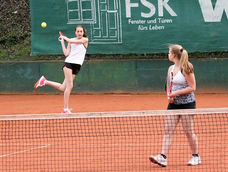 Damen 50 erringen dritten Sieg in Folge  Rachel Sittig und Sophia Wessely von der jungen Damenmannschaft. (Foto: privat)(bro) (js) Nach der Pause während der Pfingstferien nimmt die Tennis- Medenrunde des Tennisclubs Blau-Weiß wieder Fahrt auf.