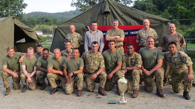 Seit vielen Jahren kommen auf Einladung der Familie Rohde englische Soldaten nach Eberbach, um hier unter anderem gemeinnützige Arbeiten an Brücken und Waldhütten zu übernehmen. Vor zwei Jahren musste man sich nach über 40 Jahren von den Royal Engineers verabschieden, weil die Einheit in Hameln aufgelöst wurde. Niemand hat zu diesen Zeitpunkt damit gerechnet, dass in Minden eine neue Einheit stationiert werden wird und dass in dieser Kompanie Soldaten sind, die schon seit vielen Jahren bei den Projekten in Eberbach dabei waren. Sie kamen als Mitglieder des 23 Amphibious Engineer Troop im 75 Engineer Regiment mit Seargant Rob Errington vor zwei Wochen hier an und schlugen ihr Lager auf dem Fetenplatz in der Au auf.