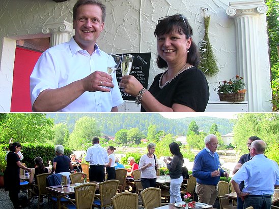 Für eine genussvolle Auszeit am Neckarstrand Unter den Gratulanten zur Neueröffnung auf der Aussichtsterrasse war auch Bürgermeister Peter Reichert. (Fotos: Hubert Richter)(hr) Die Eberbacherin Susanne Götz hat in ihrem Leben schon viel bewegt. Jetzt ist sie mit ihrem neuen Projekt am Neckar gestrandet. "Strand-Gut” heißt das Café und Bistro, das sie gestern offiziell auf dem Eberbacher Campingplatz eröffnete.