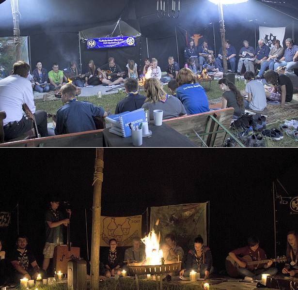 Pfadfinder singen zum fünften Mal bis in die Nacht hinein (Fotos: privat)(bro) (dm) Der Singende Reiher hatte dieses Jahr ein kleines Jubiläum. Seit 2011 veranstaltet der Pfadfinderstamm Silberreiher eine überregionale und überbündische Singerunde im Juni. Dieses Jahr drängten sich über 50 Teilnehmer in der imposanten Jurtenburg um drei Feuerstellen und schmetterten bis in die frühen Morgenstunden traditionelle, moderne und Allerweltslieder in die Nacht.
