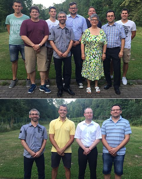 Die Weichen sind gestellt, das Signal steht auf Grün Oben: Neue Vorstandschaft: v. l. Philipp Walter, Alexander Schwab, Christian Hildenbrand, Thomas Neuer, Stephan Deuser, Daniel Weißbrodt, Stella Dochitescu, Christian Menges, Lukas Fischer. Unten: Die ausgeschiedenen Vorstandsmitglieder mit dem 1. Vorsitzender Thomas Neuer: Simeon Bohnert, Torsten Münch, Markus Lemberger (v. l.). (Fotos: privat)(bro) (lf) Zu ihrer jährlichen Generalversammlung hatte die Handballgesellschaft Eberbach alle Ihre Mitglieder am 2. Juli in ihr Vereinsheim eingeladen. Trotz der tropischen Temperaturen erzielten die Handballer ihren ersten Sieg schon vor Beginn der Versammlung - einen Besucherrekord.