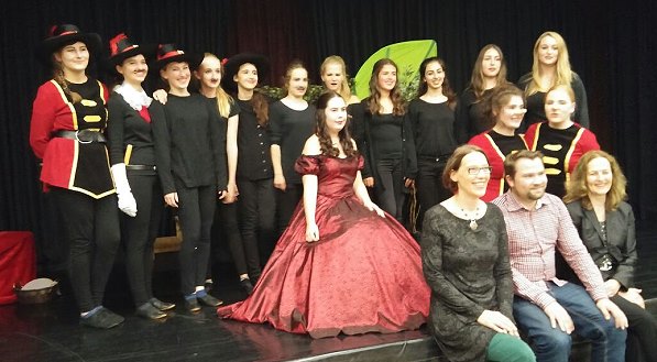 Der lange (Nasen-)Kampf um die Liebe (Foto: privat)(bro) (jr/jh/jh) Edmond Rostands „Cyrano von Bergerac“ ist wohl das Theaterstück der Stunde in Eberbach: Nicht nur die Badische Landesbühne präsentierte kürzlich in Eberbach das Stück, sondern auch die Theater AG des Hohenstaufen-Gymnasiums. Unter der Leitung von Mathilde Stähle-Buchta, Tobias Sicks und Stefanie Pannes-Bayram führte die Theater AG eine sehr ansprechende Inszenierung in der Schulaula auf. Die zahlreichen jungen Darstellerinnen aus den Klassenstufen sieben bis zwölf beeindruckten nicht nur durch Textsicherheit, sondern auch durch ihr schauspielerisches Talent.