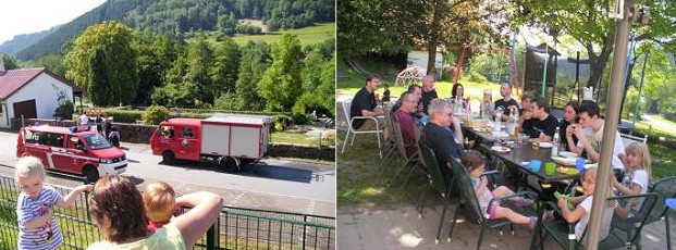 Tatütata, die Feuerwehr war da (Fotos: privat)(bro) (hn) Große Aufregung herrschte am letzten Freitag im Kindergarten GerneGross. Rauchschwaden zogen um das Hauseck. Ein Brand im Kindergarten - zum Glück nur eine Übung.