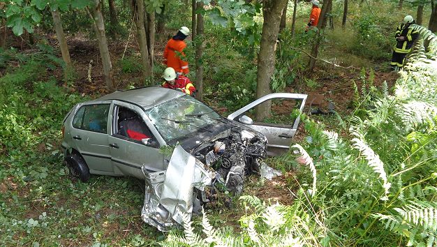 Die etwa 25-jährige Autofahrerin kam gegen 10.45 Uhr vermutlich auf nasser Fahrbahn mit ihrem VW Polo talseits von der Straße ab in den angrenzenden Waldbereich. Passanten informierten die Rettungskräfte.