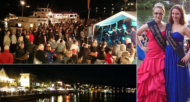 24 Hoheiten huldigen der neuen Vierburgenkönigin Sophia I. (Fotos: Thomas Wilken)(tom) Die Vierburgenstadt Neckarsteinach hat eine neue Regentin: Das bisherige Burgfräulein Sophia folgte Vierburgenkönigin Kathrin I. auf dem Thron nach. Beim 47. Tag des Gastes wurde sie gestern feierlich gekrönt. Ihre Nachfolgerin als Burgfräulein ist die 18-jährige Maren. Aus der gesamten Metropolregion und darüber hinaus waren dazu 24 Hoheiten gekommen, um der Königin zu huldigen. Festbetrieb, Vierburgenbeleuchtung und Brillantfeuerwerk rundeten den Tag ab.