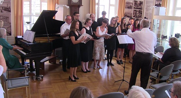 Als Moderator führte der Ex-Eberbacher Maxime Schleyer durch die Geschichte. Als Orchester-Ersatz sorgte Adelheid Lechler am Klavier für die instrumentale Begleitung. Das Publikum zeigte sich am Ende begeistert von der Aufführung. Wie der Vorsitzende des Museumsvereins, Reinhard Stupperich, ankündigte, darf man sich im Juli 2016 auf ein weiteres Gastspiel von “Pro Musica und Pro Arte” im Eberbacher Museum freuen, dann voraussichtlich mit Mozarts Oper “Cosi fan tutte”.
