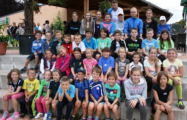 Schnuppertag am Ferienanfang (Foto: privat)(hr) (js) Zum Ferienbeginn trafen sich 29 Kinder im Rahmen der Eberbacher Ferienspiele auf der Tennisanlage in der Au, um den Umgang mit dem kleinen, gelben Filzball kennenzulernen.
