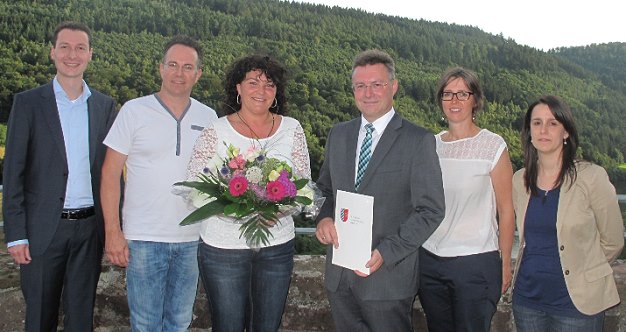 Schallmauer bei bei „La Traviata“-Premiere durchbrochen Die 275.000ste Besucherin Romy Haaß (Mitte) mit Bürgermeister Norman Link, Intendant Rainer Roos, Landrat Dr. Achim Brötel und den Geschäftsführerinnen Heike Brock und Ilka Metzger (v. l.). (Foto: privat)(cr) (nok) In der nunmehr 33. Spielzeit konnten die Schlossfestspiele Zwingenberg am vergangenen Freitag, 31. Juli, mit Romy Haaß aus Mosbach-Lohrbach die 275.000ste Besucherin begrüßen.
