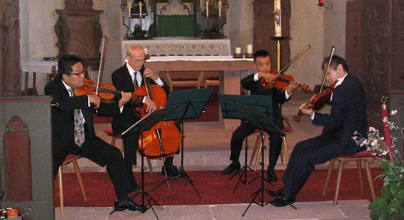 Streichquartette von Beethoven und Schubert in der Ersheimer Kapelle (Foto: privat)(hr) (khm) Am gestrigen Donnerstag wurden die von dem Violinvirtuosen Prof. Nobuhiko Asaeda geleiteten diesjährigen Meisterkonzerte mit einem Streichquartettabend in der Ersheimer Kapelle zu Hirschhorn vor zahlreich erschienenem Publikum eröffnet.