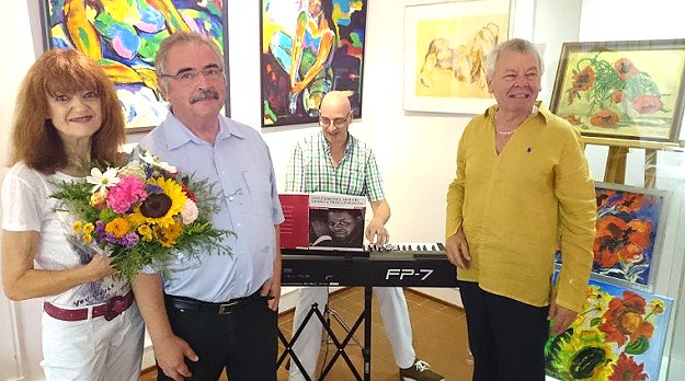 In Vertretung des Vorsitzenden Ulrich Spiegelberg, der sich auf die musikalische Umrahmung der Feierstunde am Piano konzentrierte, begrüßte Hans-Jürgen Waibel die Besucher. „Treffender könnte man es nicht bezeichnen“, meinte Waibel mit Blick auf den Ausstellungstitel „Kontraste“. Die künstlerische Bandbreite sei in der Vielfalt der Stilrichtungen und der eingesetzten Materialien „sehr, sehr selten anzutreffen“. Evelyn Christoffers liebe Kontraste und sei „immer für spontane künstlerische Überraschungen gut“.