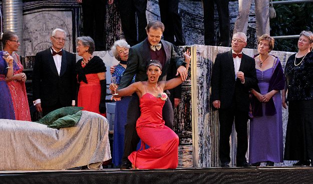 1:0 für den neuen Intendanten Rainer Roos "La Traviata" war in diesem Jahr neben der besonders erfolgreichen Rockoper "Jesus Christ Superstar" die Hauptproduktion. (Foto: Martin Hahn)(cr) (nok) Nachdem auch die letzte Vorstellung des Rock-Musicals „Jesus Christ Superstar“ am Sonntagnachmittag im erneut restlos ausverkauften Zwingenberger Schlosshof von den begeisterten Zuhörerinnen und Zuhörern mit Standing Ovations gefeiert worden war, zogen die Verantwortlichen bei der unmittelbar anschließenden Dernierenfeier auf der Terrasse des Markgräflichen Forstamtes eine rundum positive Bilanz der 33. Spielzeit: