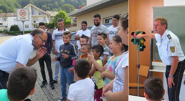 Richtiges Verhalten im Straßenverkehr geschult (Fotos: Claudia Richter)(cr) Richtiges Verhalten im Straßenverkehr erlernten heute Vormittag Flüchtlingskinder in Eberbach.