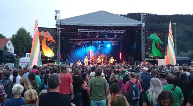 Auch in der 33. Auflage attraktiv wie eh und je (Foto: Thomas Wilken)(tom) Der Regenbogen über Rothenberg macht am Samstagabend kurz vor dem Guru-Guru-Auftritt die Illusion perfekt: Es ist nicht das Jahr 2015, sondern 1968 oder 1969. Einige tausend Hippies und Flower-Power-Fans haben sich in Finkenbach zusammengefunden, dem Woodstock im Odenwald. Vorne auf der Bühne wird Musik aus den späten 60ern oder frühen 70ern gespielt, entweder von den Originalen oder ihren heutigen Epigonen - im positiven Sinn.