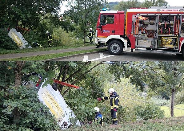 Der Augenschein ließ Schlimmeres vermuten, hatte sich doch der Kleinlaster um einen Baum am Straßenrand gewickelt. Der junge Mann kam laut Polizei auf dem Weg von Hirschhorn in Richtung Eberbach vermutlich infolge von Unachtsamkeit mit seinem Fahrzeug von der Straße ab, überschlug sich und blieb anschließend in der Böschung Richtung Neckar schräg auf dem Dach liegen. Rettungswagen und Notarzt waren aufgrund der Nähe zum Eberbacher Krankenhauses schnell vor Ort. Der Fahrer wurde trotz seiner leichten Verletzungen vorsorglich in die Chirurgische Klinik nach Heidelberg gebracht. Der einer Eberbacher Firma gehörende Lieferwagen des 20-Jährigen musste vom Abschleppdienst geborgen werden. Der Unfallort wurde durch die Feuerwehr Eberbach abgesichert. Bis etwa 13 Uhr war die B 37 halbseitig gesperrt. Die Höhe des Sachschadens beträgt rund 10.000 Euro.