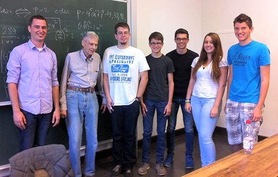 Am Ende erzählte Tate, dass er nun mit über 90 Jahren endlich aufgehört habe, Vorlesungen zu halten und überreichte der Gruppe ein handsigniertes Exemplar seines neusten Buches. Der Erfahrungsaustausch mit einem so bedeutenden Mathematiker war eine überwältigende Erfahrung nicht nur für die Schüler, sondern auch für ihren Lehrer Dr. Matthias Hauck, der das Treffen arrangierte und die Gruppe begleitete.