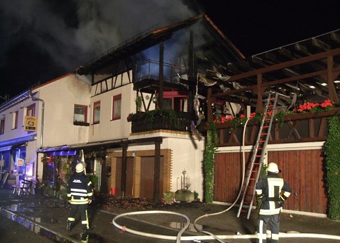 Als die Feuerwehrkräfte aus Rothenberg und Beerfelden eintrafen, stand der Dachstuhl des Gebäudes in der Beerfelder Straße bereits in Vollbrand. Nach Polizeiangaben hatten die Bewohner das Haus rechtzeitig unverletzt verlassen können.
