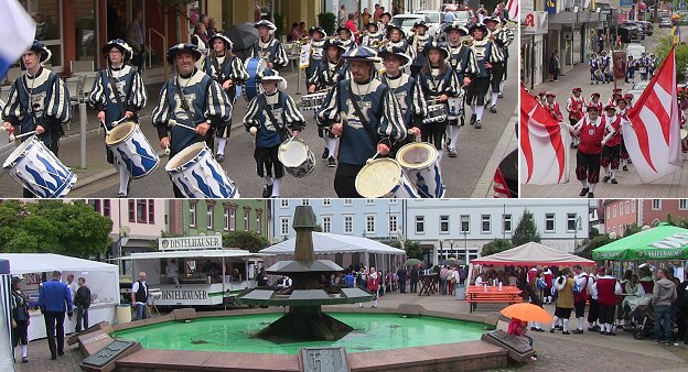 Auf dem Leopoldsplatz wurde ab 11 Uhr zu einem Frühschoppen eingeladen, und zahlreiche Gäste besuchten bei zunächst noch trockenem Wetter das Fest. Bürgermeister Peter Reichert überbrachte dem Fanfarenzug unter Vorsitz von Jochen Benkwitz die Glückwünsche der Stadt.