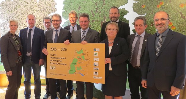Die Arbeitsgemeinschaft Naturparke Baden-Württemberg setzt ich für die Belange der sieben Großschutzgebiete im Südwesten ein. Vertreter der sieben Naturparke trafen sich gestern Vormittag in Eberbach im Thalheimschen Haus, Sitz des Naturparks Neckartal-Odenwald. Der Landrat des Neckar-Odenwald- Kreises und Sprecher der AG Naturparke Baden-Württemberg, Dr. Achim Brötel, ließ mit seinen Kolleginnen und Kollegen der sieben Naturparke die Arbeit der letzten zehn Jahre Revue passieren und stellte geplante Projekte und Aktionen für das Jahr 2016 vor, darunter die gemeinsame Teilnahme auf der Tourismusmesse CMT in Stuttgart sowie die Auflage einer gemeinsamen Wanderbroschüre.