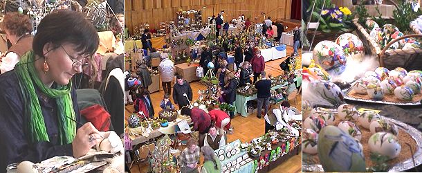Hasen, Eier und andere Frühlingsboten (Fotos:Richter)(hr) Bis zu 5.000 Besucher erwartet der Bürger- und Heimatverein wieder zum inzwischen schon traditionellen Ostereiermarkt, der heute und morgen in der Stadthalle Eberbach stattfindet. 44 Aussteller bieten allerlei Kunsthandwerk und sontige Artikel passend zu Ostern und zum Frühling an. Der Markt ist täglich von 10 bis 18 Uhr geöffnet.