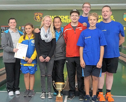 Ein erfolgreiches Kegel-Wochenende (Foto: privat)(bro) (ar) Am vergangenen Wochenende fand in Heidelberg der Baden Cup 2015 statt. Zwei Mädchen von der Eberbacher Kegeljugend nahmen an diesem Wettbewerb teil und belegten den ersten Platz des Bezirks 3. Es spielten Marie Lauter in der C Jugend, sie erreichte 522 Holz (spielte nur in die Vollen), und Marielle Richter von der B Jugend. Sie erkegelte gute 318 Holz.