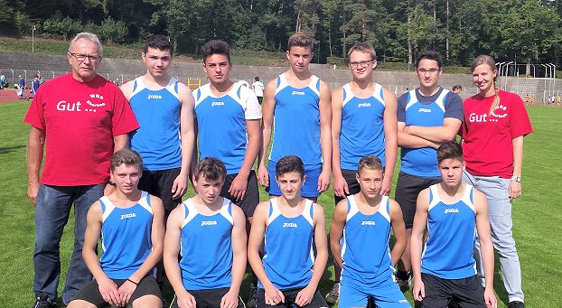 Fünfter Platz beim Bodenseeschulcup in Konstanz  Hintere Reihe v. l.: Schulleiter und Trainer Richard Wurm, Tufan Akdeniz, Kürsat Metan, Robin Auerbach, Marcel Gowin, Nicolai Reschling und Trainerin Melanie Rapp. Vordere Reihe v. l.: Alexander Rejbuch, Dominik Woiwode, Alessandro Cefariello, David Brandt und Luke Arnold. (Foto: privat)(bro) (rw) Beim internationalen Bodenseeschulcup in Konstanz vom 24. bis 25. September erreichte die Leichtathletikmannschaft der Werkrealschule, die sich als Landessieger von Baden qualifizierte, gegen die Teams aus Bayern, Württemberg, Rheinland-Pfalz, Österreich und der Schweiz einen guten fünften Platz.
