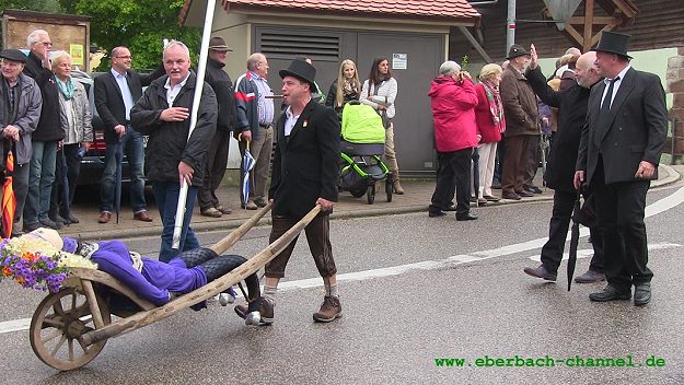 Mehrere Vereine und Gruppen sorgten mit verschiedenen Ortsthemen beim Umzug durch das Dorf für Stimmung und gute Laune bei den Zuschauern (siehe Bilder). Angeführt von der Musikkapelle Allemühl, ging es zum Hof von Manfred Heiß an der Ortsdurchfahrt. Dort verlas Kerwepfarrer Ralph Schweizer seine Predigt (Bild rechts), die wieder gespickt war mit Anekdoten aus dem Ortsgeschehen.