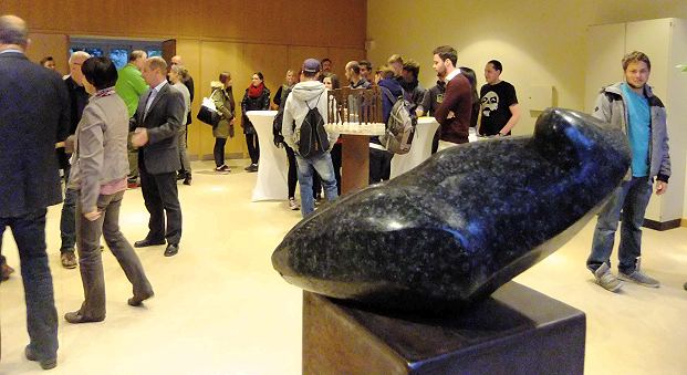 Die Gäste nahmen dann, bei einem Umtrunk mit kleinem Imbiss, die Ausstellungsobjekte in Augenschein. Viele Einzel- und Gruppengespräche untereinander sowie mit dem Künstler, zeigten einen ersten Erfolg des Ausstellungskonzeptes.