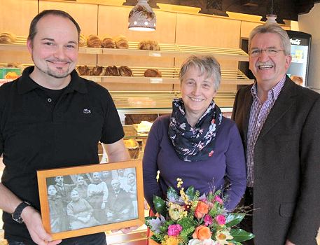 Nach der Bäckerei Beisel gibt es jetzt die Bäckerei Beisel V.l. Christian Beisel (mit im Text genannten Bild von 1889), Karin Sturm, Hans Heinz Keursten. (Foto: Thomas Wilken)(tom) Die Bäckerei Beisel hat einen würdigen Nachfolger gefunden: die (Haus-)Bäckerei Beisel. Die Namensgleichheit zwischen dem Rothenberger Bäcker und seinem Nachfolger aus Eberbach kommt nicht von ungefähr, gibt es doch familiäre Verbindungen. Die reichen bereits 150 Jahre zurück. Bürgermeister Hans Heinz Keursten freute sich, dass die Geschäftstradition im Ort fortgeführt wird. Gleichzeitig betonte er, wie wichtig ein Bäcker für die Infrastruktur im Ortsteil mit seinen knapp 1.000 Einwohnern sei.