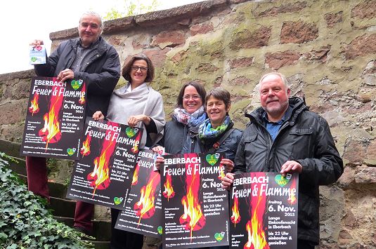 In Eberbachs Innenstadt lodern wieder die Flammen EWG-Mitglieder sind "Feuer & Flamme" für ihren herbstliches Shoppingabend. (Foto: Claudia Richter)(cr) Die Eberbacher Werbegemeinschaft lädt am kommenden Freitagabend bei extra langen Geschäftsöffnungszeiten zum Bummeln bei "Feuer & Flamme" ein. Außerdem besteht an diesem Abend die letzte Möglichkeit sich am aktuellen Gewinnspiel zu beteiligen.
