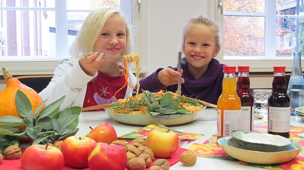 Multikulturelle Küchenvielfalt kommt auf die Teller Bei der Vorstellung des geplanten “Eberbacher Mahls” warfen Smilla und Cicely schon mal einen Blick über ihren Tellerrand und verkosteten frische Pasta mit Gemüse. (Foto: Claudia Richter)(cr) Beim gemeinsamen Genießen einfach mal über den Tellerrand schauen, ist am kommenden Samstag in Eberbach möglich und erwünscht. Im Rahmen der Veranstaltungsreihe "Lebens-Mittel - Energie fürs Leben" (wir berichteten) sind alle Eberbacher in die Stadthalle eingeladen.