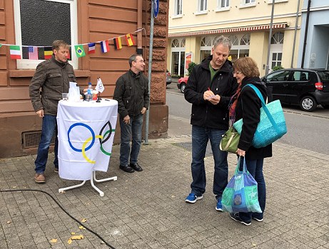 Wird Eberbach Olympiastadt? (Foto: privat)(bro) (ff) Am vergangenen Samstag machten die Karnevalisten der Kuckucke auf sich aufmerksam. Mit einem Stand auf dem Wochenmarkt starteten sie eine Bürgerbefragung zum Thema: Kann Eberbach zum Austragungsort der Olympischen Spiele werden?