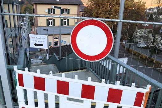 Wie der Bürgermeister mitteilte, habe schon die letzte etatmäßige Untersuchung der Treppe von Gleis 1 zur Brücke einige Verdachtsmomente ergeben. Das aktuelle Gutachten zeigte laut Ingenieurbüro dann auf, „dass Beton abgeplatzt und die Stahlarmierung gerostet ist“. Deshalb habe das Büro „eine umgehende Sperrung“ empfohlen. Was man, so Sens, aus Haftungsgründen auch sofort umgesetzt habe.