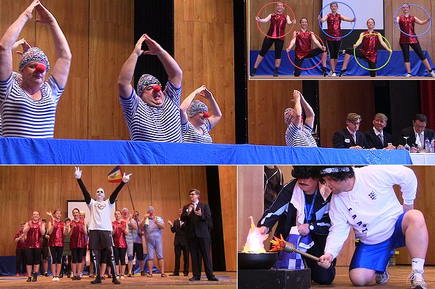Eberbach wird 2020 zur Olympiastadt (Fotos: Hubert Richter)(hr) In Eberbach werden in fünf Jahren die olympischen Spiele stattfinden, wenn es nach der Karnevalgesellschaft Kuckuck (KGK) geht. Dieses Szenario spielten die KGK-Aktiven heute jedenfalls bei ihrer traditionellen Kampagneeröffnung ab 11.11 Uhr im großen Saal der Stadthalle vor - mit viel Klamauk und schauspielerischem Talent.