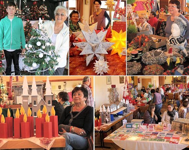 Selbst gebastelte Grußkarten oder Sterne, Strickwaren, Kränze, Gestecke oder Krippen wie Patchwork, Laubsägearbeiten, Teddybären, beleuchtete Weihnachtsartikel, Stoffsachen oder bemalte Steine rundeten das große Sortiment ab. Kurzum: Wer schon sich schon frühzeitig mit Weihnachtsgeschenken beschäftigte und dem Last-Minute-Kauf vorbeugen wollte, fand beim Adventsmarkt des Frauenchors ein reiches Angebot vor.