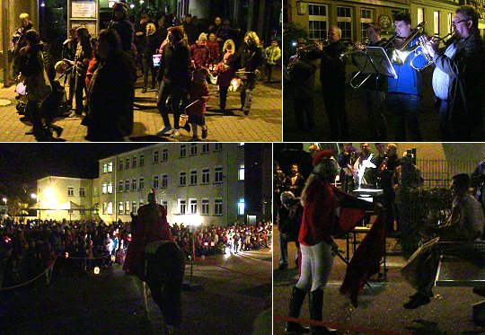 Lichter und Lieder im Gedenken an den heiligen Martin (Fotos: Hubert Richter)(hr) Hunderte Kinder zogen gestern Abend beim traditionellen großen Martinsumzug mit ihren Laternen durch die Straßen der Eberbacher Innenstadt und füllten zum Abschluss den Hof der Dr.-Weiß-Schule.