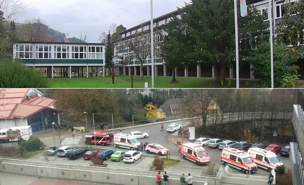 Großeinsatz der Rettungkräfte - Polizei forscht nach der Ursache für Atemwegsreizungen (Fotos: Hubert Richter/privat)(hr) (pol) In einem Gebäude der Theodor-Frey-Schule (Bild oben) kam es heute Vormittag durch ein bislang unbekanntes Gas zu Atemwegsreizungen bei Schülern und Lehrern.