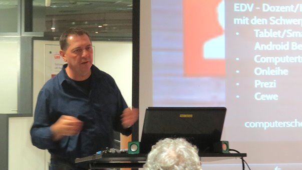 Schuh forderte die Gäste auf, mit ins UFO "Neue Medien" zu steigen und bewies während der Veranstaltung, dass Internet und Computerprogramme auch für Menschen, die nicht mehr zur Jugend gezählt werden, keine unbekannten Planeten bleiben müssen. Neue Medien seien in der heutigen Gesellschaft nicht mehr wegzudenken und könnten das Leben ein Stück weit informativer und kommunikativer gestalten.