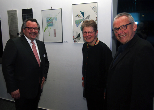 Kalligrafie-Künstlerin macht den Anfang Timo Mosca (li.) und Tobias Soldner (re.) mit der Künstlerin Bärbel Schulz. (Foto: Hofherr)