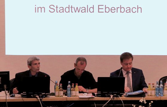 Nachhaltigkeit fordert geringeren Jahreseinschlag V.l. Manfred Robens, Siegfried Riedl und Bürgermeister Peter Reichert bei der Vorstellung des Forsthaushalts 2016. (Foto: Claudia Richter)(cr) Im Stadtwald Eberbach wird in den kommenden fünf Jahren etwas weniger Holz geerntet als bisher. Das ist ein Ergebnis der Zwischenprüfung zur Forsteinrichtung, wie die Forstverwaltung bei der Vorstellung des Waldhaushaltsplans für 2016 am Montag im Verwaltungs- und Finanzausschuss des Eberbacher Gemeinderats bekannt gab.