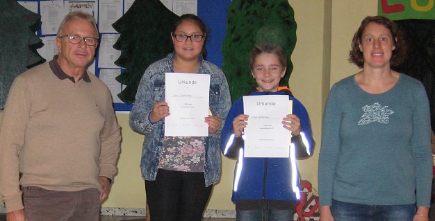 Lena las am besten V.l. der kommissarische Schulleiter Richard Wurm, Siegerin Lena Westendorp, der Zweitplatzierte Chris Kellermann und Organisatorin Melanie Schwinn. (Foto:privat)(hr) (mf) Am 16. November fand der traditionelle Lesewettbewerb der Werkrealschule statt. Die 5. und 6. Klassen schickten ihre jeweils drei besten Leser und Leserinnen zum Vorlesen in die Aula der Schule.