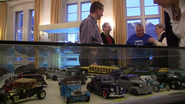 Gezeigt wird in mehreren Glasvitrinen eine private Sammlung selbstgebauter Modellautos und -motorräder. Überwiegend sind es Nachbauten von Oldtimerfahrzeugen aus Amerika und Deutschland.