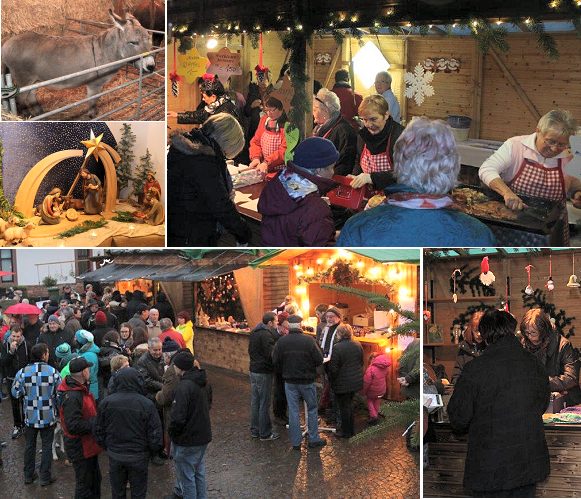 Am Nachmittag schaute St. Nikolaus mit seinen Engeln vorbei und hatte für die Kinder etwas Süßes im Gepäck. Vom Förderverein der Feuerwehr wurde eine lebende Krippe mit echten Tieren aufgebaut, an der sich Jung und Alt an Esel, Ochs und Co. erfreuen konnte. Der Posaunenchor sorgte zwischenzeitlich für weihnachtliche Weisen.
