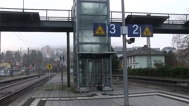 Wer in Eberbach auf den Personenaufzug der Bahn angewiesen ist, um an Gleis 2 oder 3 zu gelangen, hat seit 28. September schlechte Karten. Der Aufzug ist defekt, nachdem die Aufzugstüren mittels Spreizers von der Feuerwehr gewaltsam geöffnet werden mussten, um festsitzende Personen zu befreien. Wer allerdings mobilitätseingeschränkt sei und Richtung Heidelberg fahren wolle, müsse zurzeit leider mit dem Zug von Gleis 1 bis nach Neckargerach fahren, dort das Gleis wechseln und dann in den Zug nach Hirschhorn, Heidelberg und Mannheim steigen, bedauerte auch heute wieder der zuständige Mitarbeiter des Bahnmanagements. Das ist in der Tat kein Aprilscherz oder ein Schildbürgerstreich, es ist bittere Realität, denn in Eberbach habe man "keinen Aufzug von der Stange". So kommt es, dass für die Eberbacher Sonderedition auf die Schnelle keine Ersatzteile von der Lieferfirma Thyssen in die Stadt am Neckar geschickt werden können. Laut aktueller Planung der Bahn soll der bei der Rettungsaktion im September entstandene Schaden von mehr als 20.000 Euro in der dritten Kalenderwoche 2016 repariert werden.