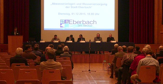 Investitionsstau in Millionenhöhe soll abgearbeitet werden (Foto: Hubert Richter)(hr) Nur rund 30 interessierte Zuhörerinnen und Zuhörer kamen am vergangenen Dienstag, 1. Dezember, um 18 Uhr in den großen Saal der Stadthalle, wo die Stadtverwaltung zu einer Info-Veranstaltung über die Wasserversorgung und die Abwasserentsorgung in Eberbach eingeladen hatte.