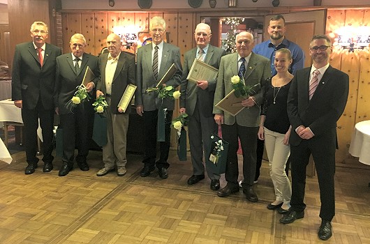 Für über 60 Jahre Mitgliedschaft und ehrenamtliches Engagement erhielten Karl Mechler, Herbert Schilling, Konrad Seib, Gerhard Raab und Eugen Sensbach eine Ehrenurkunde und ein Präsent.