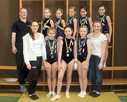 Wettkampfrunde mit Silbermedaille abgeschlossen (Foto: privat)(bro) (jl) Erfolgreich schlossen die Turnerinnen des TV Eberbach, Jahrgang 2005 und jünger, ihre Wettkampfsaison in der Schülerinnen-A-Liga des Turngaus Heidelberg ab.